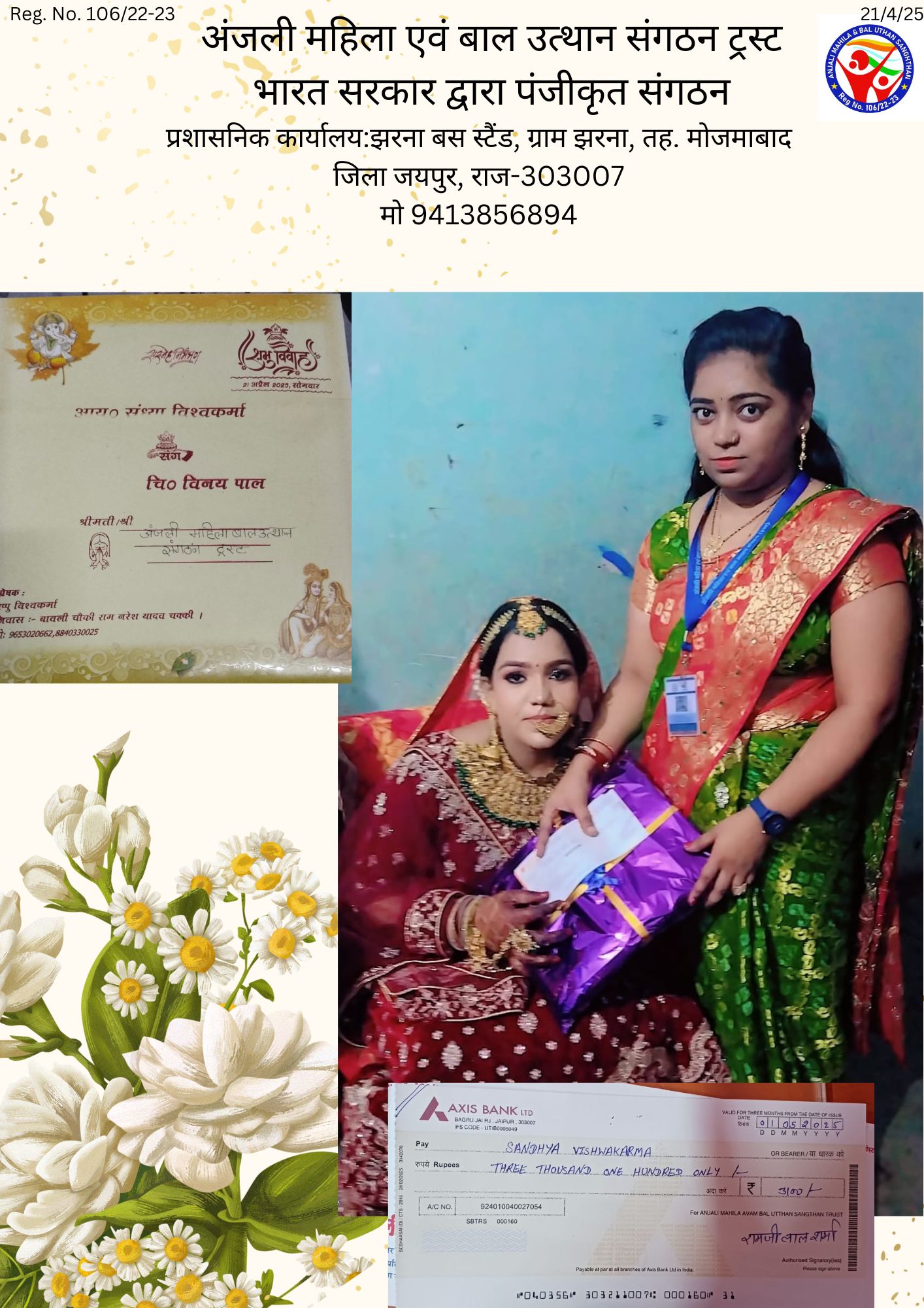 The ANJALI MAHILA AVAM BAL UTTHAN SANGTHAN TRUST is a non-profit organization dedicated to uplifting underprivileged communities by providing essential services, education, healthcare, and skill development programs.